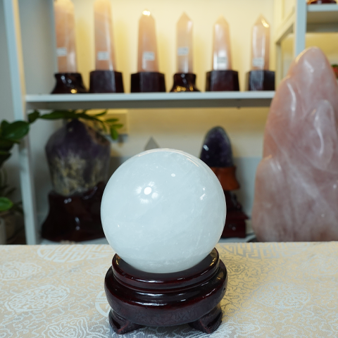 Cầu thạch anh trắng dừa nặng 0.44kg, đường kính 6cm