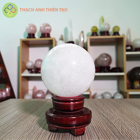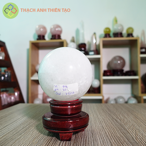 Cầu thạch anh trắng dừa nặng 0.738kg, đường kính 8.1cm