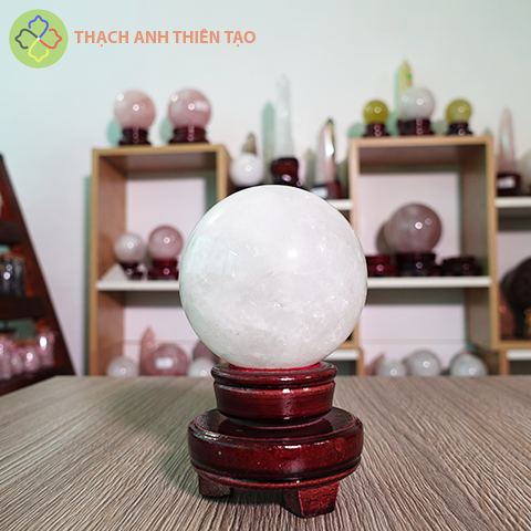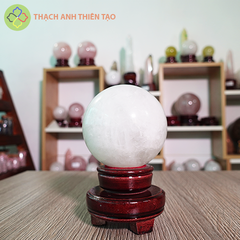 Cầu thạch anh trắng dừa nặng 0.765kg, đường kính 8.2cm