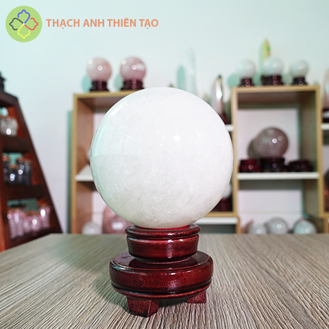 Cầu thạch anh trắng dừa nặng 1.556kg, đường kính 10cm