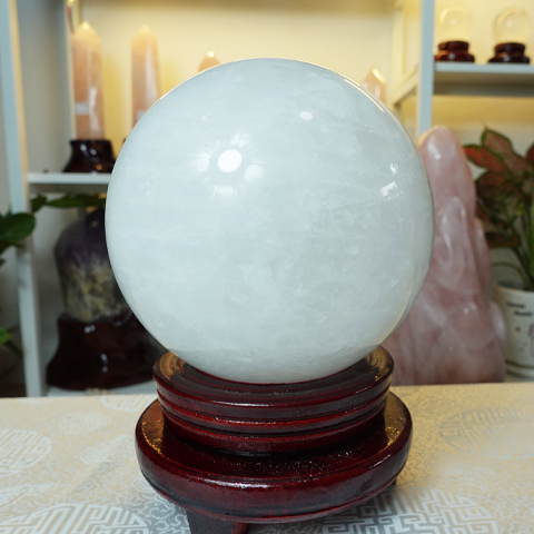 Cầu thạch anh trắng dừa nặng 4.5kg, đường kính 14cm