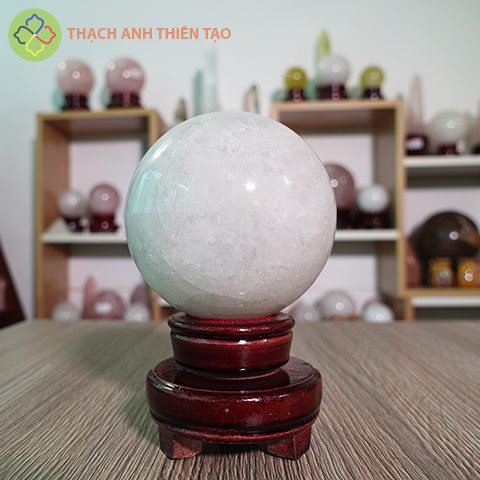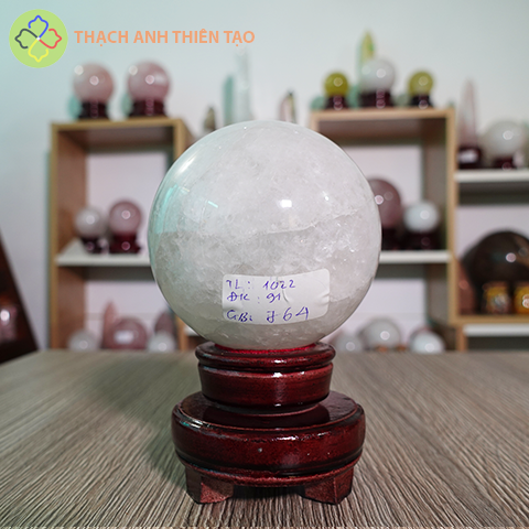 Cầu thạch anh trắng dừa nặng 1.022 kg, đường kính 9.1 cm