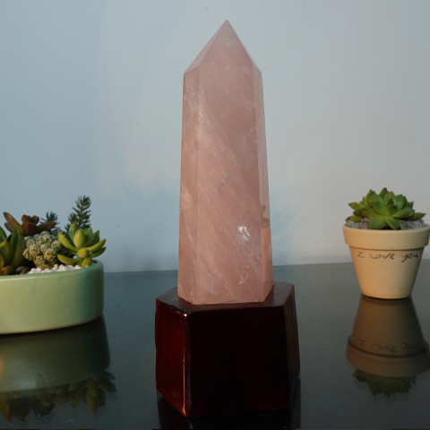 Trụ thạch anh hồng nặng 0.65kg, cao 25cm cả đế