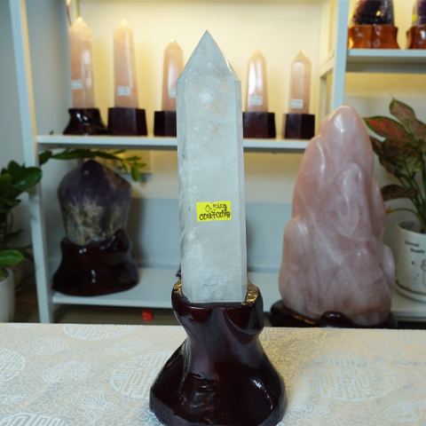 Trụ thạch anh trắng trong nặng 0.54kg, chiều cao 22cm cả đế